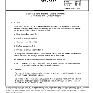 Bolts, Screws and Nuts – External Wrenching UNJ Thread, Inch – Design Standard