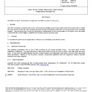 This SAE Aerospace Standard (AS) covers helical coil stud locking screw thread inserts made from formed wire in which the inner surface of the coil, after assembly provides threads of standard Unified 60° form as specified on the assembly drawing. This document also covers the performance requirements of the locking feature of the insert which will retain Unified ANSI B1.1 (UN Profile) or AS8879 (UNJ Profile) external threaded parts.