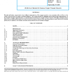 This standard applies to pressure reducers for gaseous breathing oxygen systems and for all performance profiles without regard to particular inlet or outlet pressures. Attention is given, however, to construction requirements for reducers with maximum supply pressures to 2250 psig (155 bar) and reduced pressures of 50 to 150 psig (3.4 to 10.5 bar).