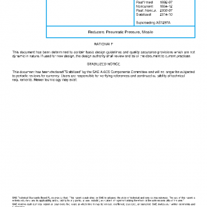 The complete specification for a pneumatic pressure reducer for high pressure pneumatic systems used in missiles comprises: (1) this standard, which includes many of the general performance requirements, (2) a detailed procurement specification describing envelope and operating conditions, and (3) the “Pneumatic Components, Aeronautical – General Specification For – MIL-P-8564” which covers general requirements common to all components for use in high pressure pneumatic systems.