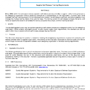 The standard applies to aero engine suppliers operating a self-release process as a delegated activity from the delegating organization. While primarily developed around the aero engine supply chain requirements, this standard can also be used in other industry sectors where a self-release process may be of benefit.