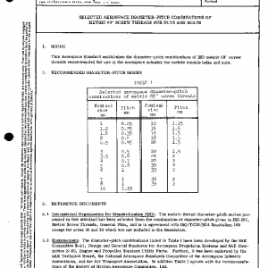 SELECTED AEROSPACE DIAMETER-PITCH COMBINATIONS OF METRIC 60° SCREW THREADS FOR NUTS AND BOLTS