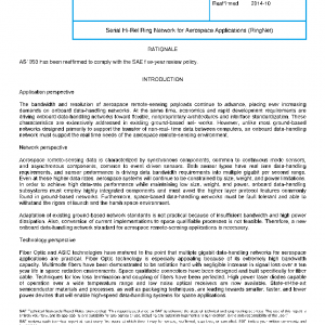 This standard establishes the design requirements for a fiber optic serial interconnect protocol, topology, and media. The application target for this standard is the interconnection of multiple aerospace sensors, processing resources, bulk storage resources and communications resources onboard aerospace platforms. The standard is for subsystem interconnection, as opposed to intra-backplane connection.