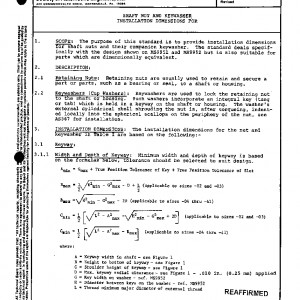 The purpose of this standard is to provide installation dimensions for shaft nuts and their companion keywasher. The standard deals specifically with the design shown on MS9951 and MS9952 but is also suitable for parts which are dimensionally equivalent.