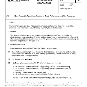 This SAE Aerospace Standard (AS) establishes Type classification for those hose assemblies commonly used in aerospace fuel, lubricating oil, and hydraulic fluid systems.