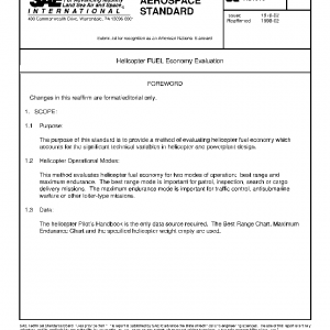 The purpose of this standard is to provide a method of evaluating helicopter fuel economy which accounts for the significant technical variables in helicopter and powerplant design.