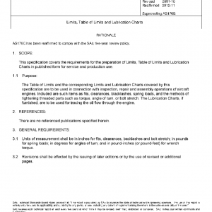 This specification covers the requirements for the preparation of Limits, Table of Limits and Lubrication Charts in published form for service and production use.
