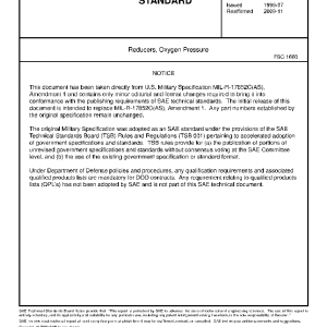 This specification covers the requirements for two types of oxygen pressure reducers.