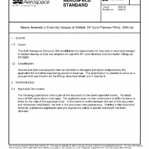 This SAE Aerospace Standard (AS) establishes the requirements for internally or externally swaged or welded sleeves or tube end adapters for use with 24° cone flareless fluid connection fittings per AS18280.