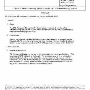 This SAE Aerospace Standard (AS) establishes the requirements for internally or externally swaged or welded sleeves or tube end adapters for use with 24° cone flareless fluid connection fittings per AS18280.