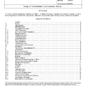 This SAE Aerospace Standard (AS) establishes the requirements for 24 degree cone flareless fluid connection fittings and nuts, internally or externally swaged, preset, or welded sleeves for use in aircraft fluid systems at nominal operating pressures up to and including 3000 psi.