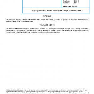 This specification defines the requirements for a grooved clamp coupling and flanges suitable for joining intermediate pressure and temperature ducting in aircraft air systems. The rigid coupling joint assembly, hereafter referred to as “the joint”, shall operate within the temperature range of -65 °F to +800 °F.
