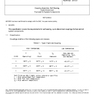This specification covers the requirements for self-sealing, quick-disconnect couplings for fuel and oil system components.