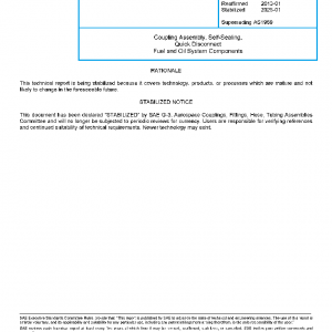This specification covers the requirements for self-sealing, quick-disconnect couplings for fuel and oil system components.