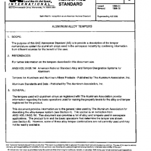 The purpose of this SAE Aerospace Standard (AS) is to provide a description of the temper nomenclature system for aluminum alloys used in the aerospace industry by combining information from different sources for the benefit of the user.