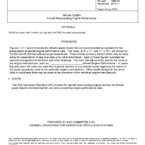 This SAE Aerospace Standard (AS) provides for aircraft reciprocating engines formats for altitude graph sheets recommended for use when presenting engine performance data.