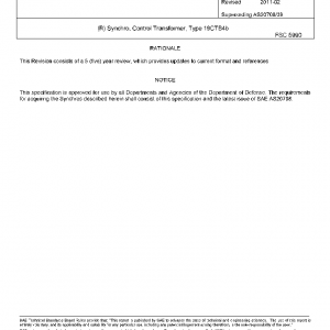 This specification covers the detail requirements for control transformer synchro, type 19CTB4b, 90 volt, 400 cycle.