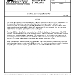 This specification relates to Synchros, 60 and 400 Hz. It is not complete in itself, but shall be used in conjunction with MIL-S-81963 in which the latter shall be recognized as forming an inherent part of this specification.