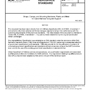 This specification covers a series of plastic and metal components and devices used for the tying and support of cable, cable assemblies and wire in electrical, electronic and communication equipment, and in interconnection systems.