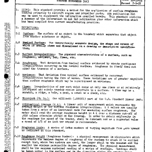 This standard provides a method for the application of surface roughness control primarily to aircraft engine and propeller parts. ASA publication B46 may be used to supplement the information compiled herein. This standard contains a summary of the information in ASA B46 publication plus other information which has been compiled from current manufacturing practice.