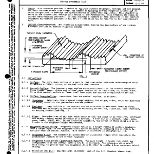 This standard provides a method of applying surface roughness, waviness and lay control. The data included herein also covers the method of applying surface roughness symbols and related designations to drawings and specifications of parts when applicable. This standard is based on the Arithmetical Average (AA) method of instrumentation. Data compiled are based on current manufacturing practices. It also includes a summary of data published in the American Standards Association publication ASA B46.1 – 1962 which may be referred to for supplementary data.