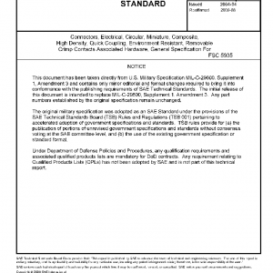 This specification covers miniature, composite, high density, threaded coupling, self locking, circular, environment resistant, electrical connectors utilizing removable crimp contacts, and associated hardware, which are capable of continuous operation within a temperature range of -65° to +175°C. These connectors are supplied under a MIL-STD-790 reliability assurance program. See 6.1 for intended use and applications.