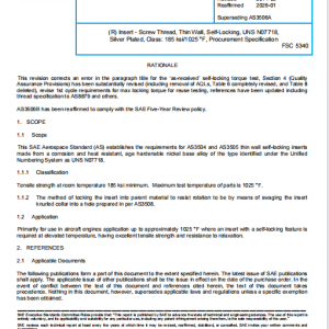 This SAE Aerospace Standard (AS) establishes the requirements for AS3504 and AS3505 thin wall self-locking inserts made from a corrosion and heat resistant, age hardenable nickel base alloy of the type identified under the Unified Numbering System as UNS N07718.