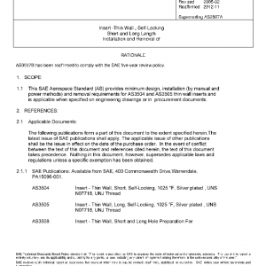 This SAE Aerospace Standard (AS) provides minimum design, installation (by manual and power methods) and removal requirements for AS3504 and AS3505 thin wall inserts and is applicable when specified on engineering drawings or in procurement documents.