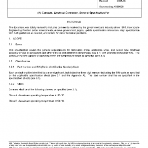 This specification covers the general requirements for removable crimp, solderless wrap, and solder type electrical contacts for use in connectors and other electric and electronic components (see 6.1) with stranded conductor wire. The contacts shall be capable of operating within the temperature range as specified (see 3.1).