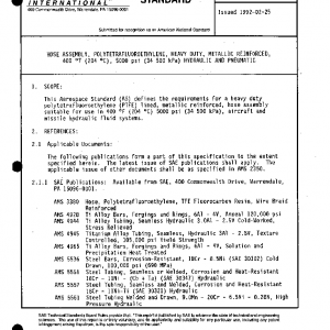 This Aerospace Standard (AS) defines the requirements for a heavy duty polytetrafluoroethylene (PTFE) lined, metallic reinforced, hose assembly suitable for use in 400 °F (204 °C) 5000 psi (34 500 kPa), aircraft and missile hydraulic fluid systems.