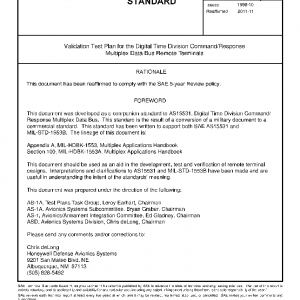 This SAE Aerospace Standard (AS) contains a sample test plan for AS15531 or MIL-STD-1553B Remote Terminals (RT) that may serve several different purposes. This document is intended to be contractually binding when specifically called out in a specification, Statement of Work (SOW), or when required by a Data Item Description (DID). Any and all contractor changes, alterations, or testing deviations to this section shall be separately listed for easy review.