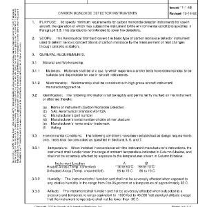 This Aeronautical Standard covers the basic type of carbon monoxide detector instrument used to determine toxic concentrations of carbon monoxide by the measurement of heat changes through catalytic oxidation.