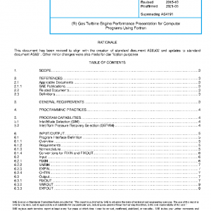 This SAE Aerospace Standard (AS) provides a method for gas turbine engine performance computer programs to be written using Fortran COMMON blocks. If a “function-call application program interface” (API) is to be used, then ARP4868 and ARP5571 are recommended as alternatives to that described in this document.