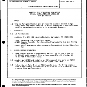 This SAE Aerospace Standard (AS) provides the essential minimum design, installation, and removal standard for AS4200 adapter and is applicable when specified on engineering drawings or in procurement documents.