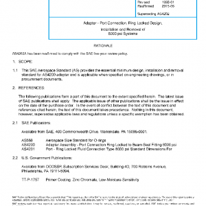 This SAE Aerospace Standard (AS) provides the essential minimum design, installation and removal standard for AS4200 adapter and is applicable when specified on engineering drawings, or in procurement documents.