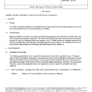 This SAE Aerospace Standard (AS) establishes the requirements for bite type sleeves for use with 24° cone flareless fluid connection fittings per AS4444.