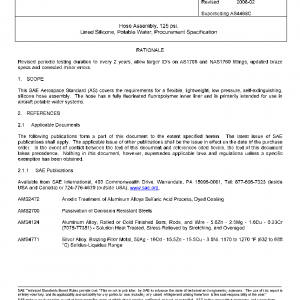 This SAE Aerospace Standard (AS) covers the requirements for a flexible, lightweight, low pressure, self-extinguishing, silicone hose assembly. The hose has a fully fluorinated fluoropolymer inner liner and is primarily intended for use in aircraft potable water systems.
