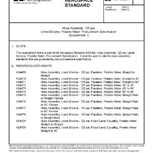 This supplement forms a part of the Aerospace Standard AS4468, Hose Assembly, 125 psi, Lined Silicone, Potable Water, Procurement Specification. It shall be used to identify hose assembly standards that are governed by this procurement specification.