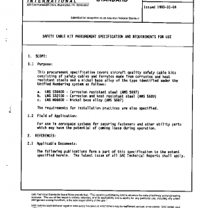 This procurement specification covers aircraft quality safety cable kits consisting of safety cables and ferrules made from corrosion and heat resistant steels and a nickel base alloy of the type identified under the Unified Numbering system as follows: