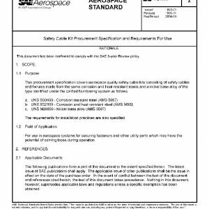 This procurement specification covers aerospace quality safety cable kits consisting of safety cables and ferrules made from the same corrosion and heat resistant steels and a nickel base alloy of the type identified under the Unified Numbering system as follows: