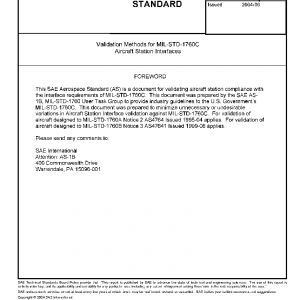 This document establishes techniques for validating that an Aircraft Station Interface (ASI) complies with the interface requirements delineated in MIL-STD-1760C. For validation of aircraft designed to MIL-STD-1760A Notice 2 AS4764 Issued 1995-04 applies. For validation of aircraft designed to MIL-STD-1760B Notice 3 AS47641 Issued 1999-08 applies.