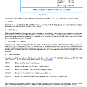 This SAE Aerospace Standard (AS) establishes the requirements for fluid fittings that combine both flareless and pipe threaded connections for use in all types of fluid systems.