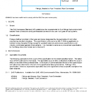 This SAE Aerospace Standard (AS) establishes the requirements for fluid fittings that combine both beaded hose connections and pipe threaded connections for use in all types of fluid systems.