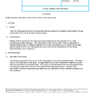 This SAE Aerospace Standard (AS) establishes the requirements for beaded fluid connection fittings (see Section 6) for use in all types of fluid systems.