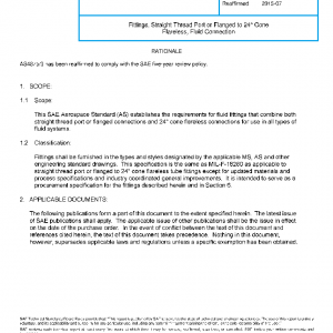 This SAE Aerospace Standard (AS) establishes the requirements for fluid fittings that combine both straight thread port or flanged connections and 24° cone flareless connections for use in all types of fluid systems.