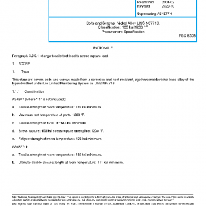 This standard covers bolts and screws made from a corrosion and heat resistant, age hardenable nickel base alloy of the type identified under the Unified Numbering System as UNS N07718.