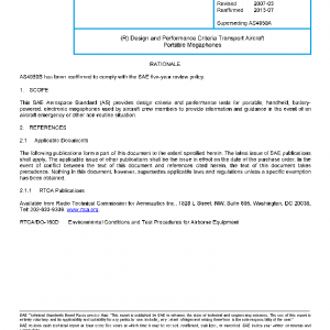 This SAE Aerospace Standard (AS) provides design criteria and performance tests for portable, handheld, battery-powered, electronic megaphones used by aircraft crew members to provide information and guidance in the event of an aircraft emergency or other non-routine situation.