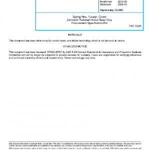 Spring Pins, Tubular, Coiled Corrosion Resistant Nickel Base Alloy Procurement Specification For(STABILIZED Mar 2024)