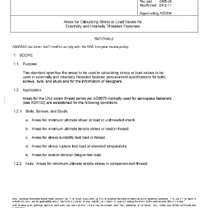 This standard specifies the areas to be used in calculating stress or load values to be used in externally and internally threaded fastener procurement specifications for bolts, screws, nuts, and studs and for the information of designers.