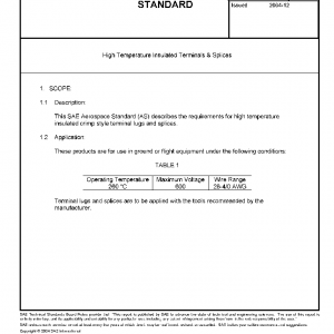 This SAE Aerospace Standard (AS) describes the requirements for high temperature insulated crimp style terminal lugs and splices.
